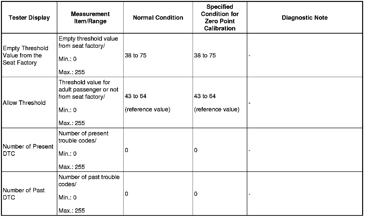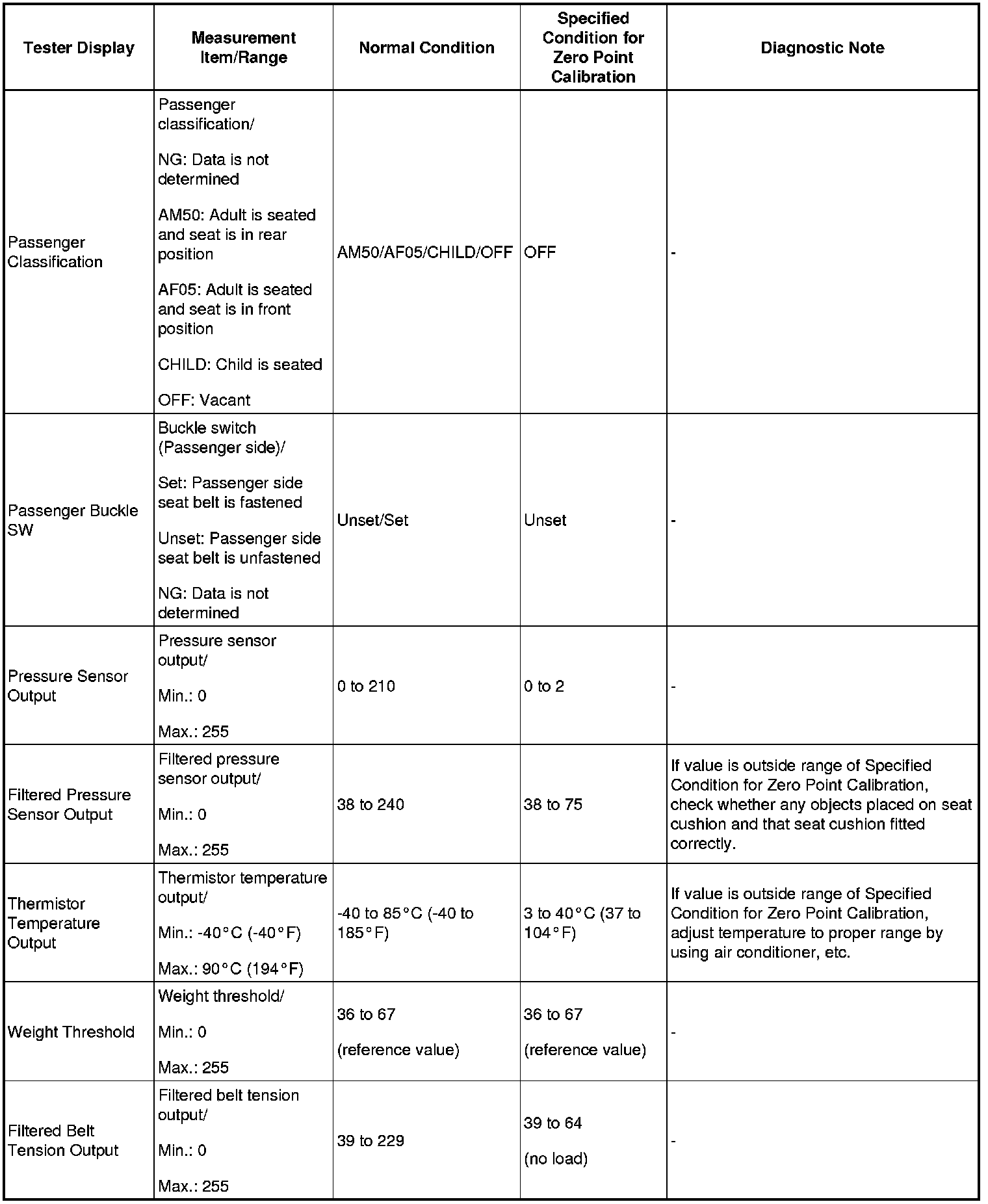 1. DATA LIST FOR OCCUPANT CLASSIFICATION ECU
