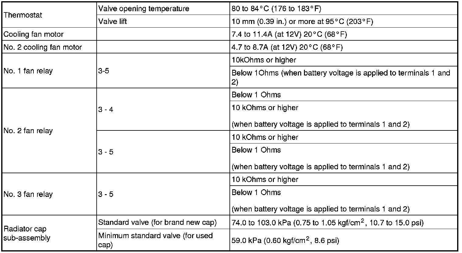 SPECIFICATIONS: 2AZ-FE COOLING: SERVICE DATA