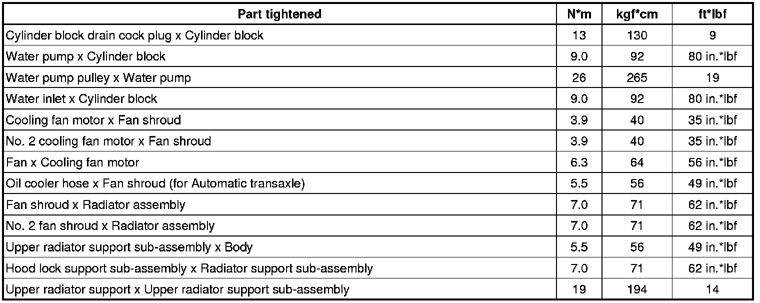SPECIFICATIONS: 2AZ-FE COOLING: TORQUE SPECIFICATIONS