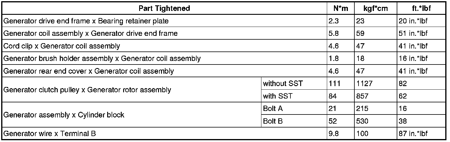 SPECIFICATIONS: 2AZ-FE BATTERY / CHARGING: TORQUE SPECIFICATIONS