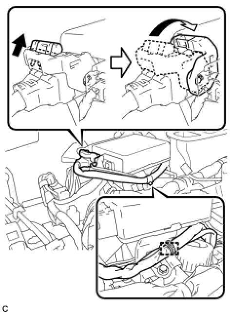 HINT: As shown in the illustration, pull out the lock of the lock lever and turn the lock lever to disconnect the connector.