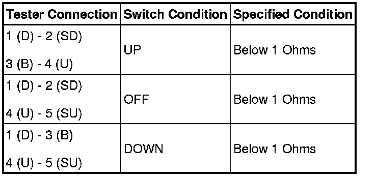 If the result is not specified, replace the power window switch assembly.