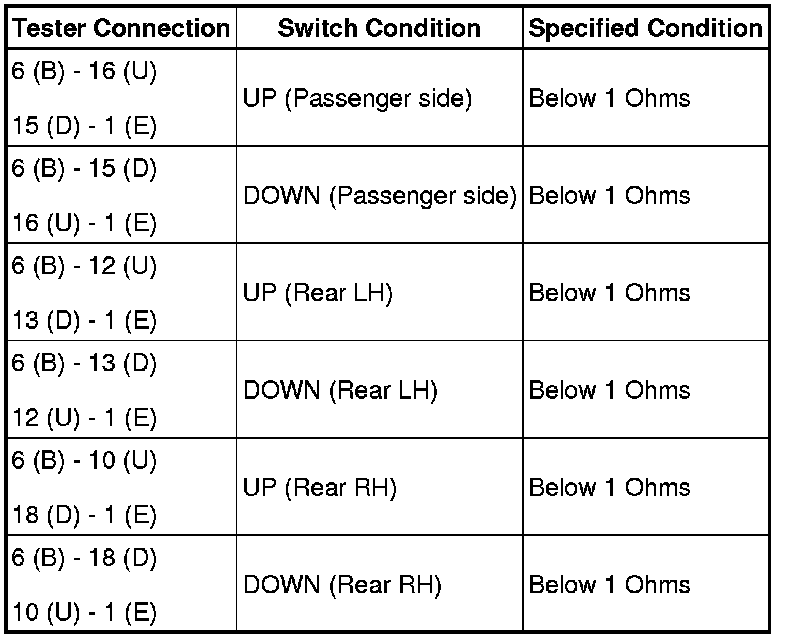 (a) Check that the passenger door power window and rear door power window manual UP and DOWN function operates normally.