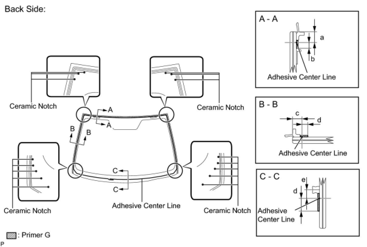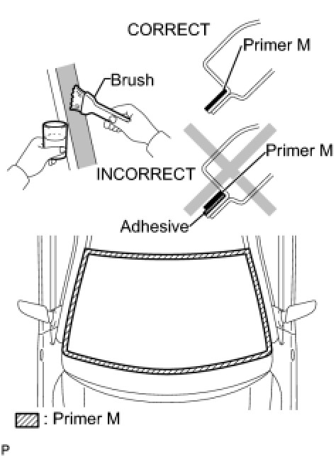 (a) Using a brush or sponge, coat the application area of the windshield glass adhesive dam with Primer G.