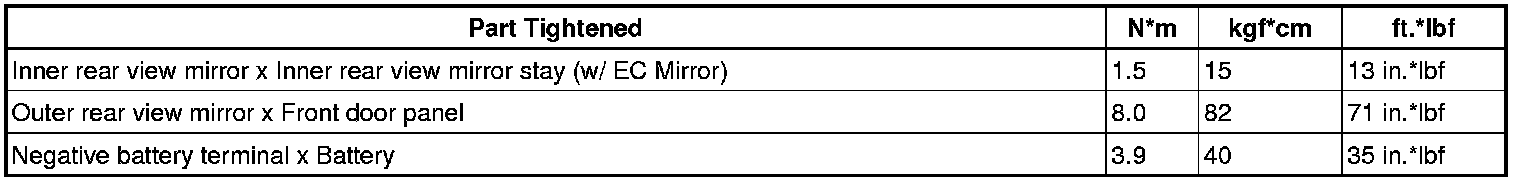 SERVICE SPECIFICATIONS: MIRROR: TORQUE SPECIFICATIONS