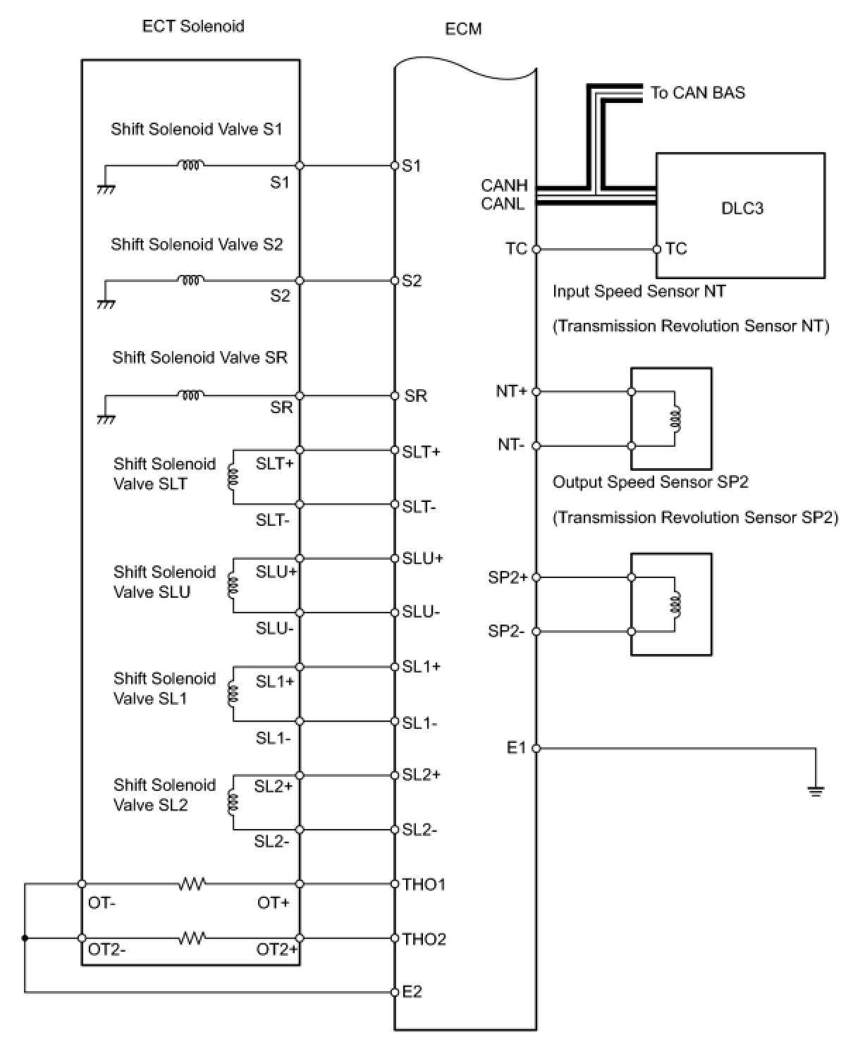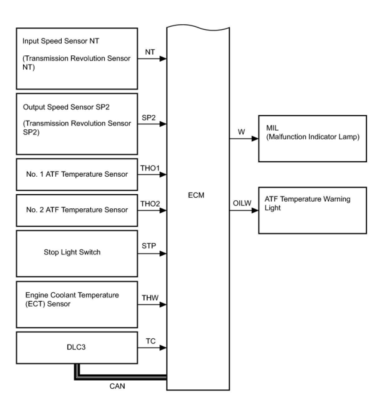 The configuration of the electronic control system in the A750E automatic transmission is as shown in the following chart.