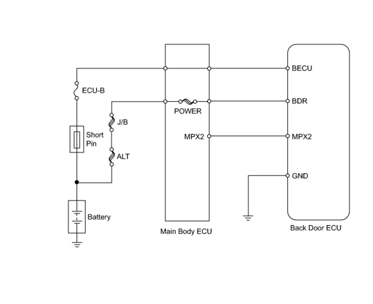 - The back door ECU has a single communication line. Therefore, if the line has a short-circuit (bus-down), the BEAN communication will be impossible and DTCs will not be output, either.