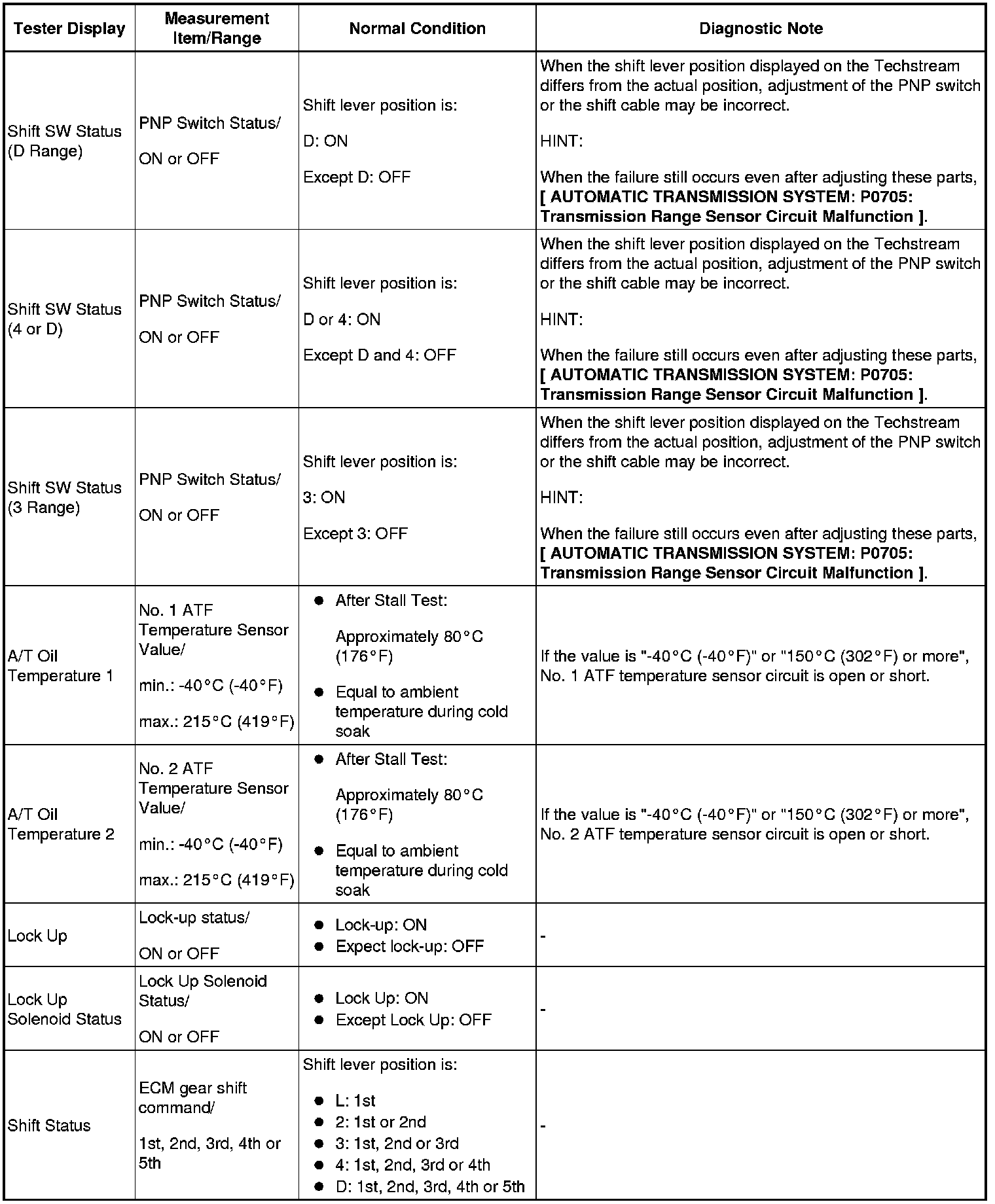 A750F AUTOMATIC TRANSMISSION: AUTOMATIC TRANSMISSION SYSTEM: DATA LIST / ACTIVE TEST