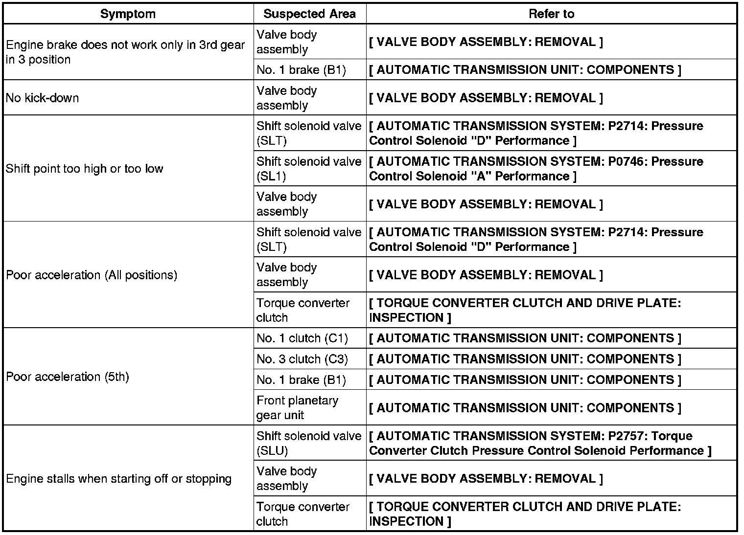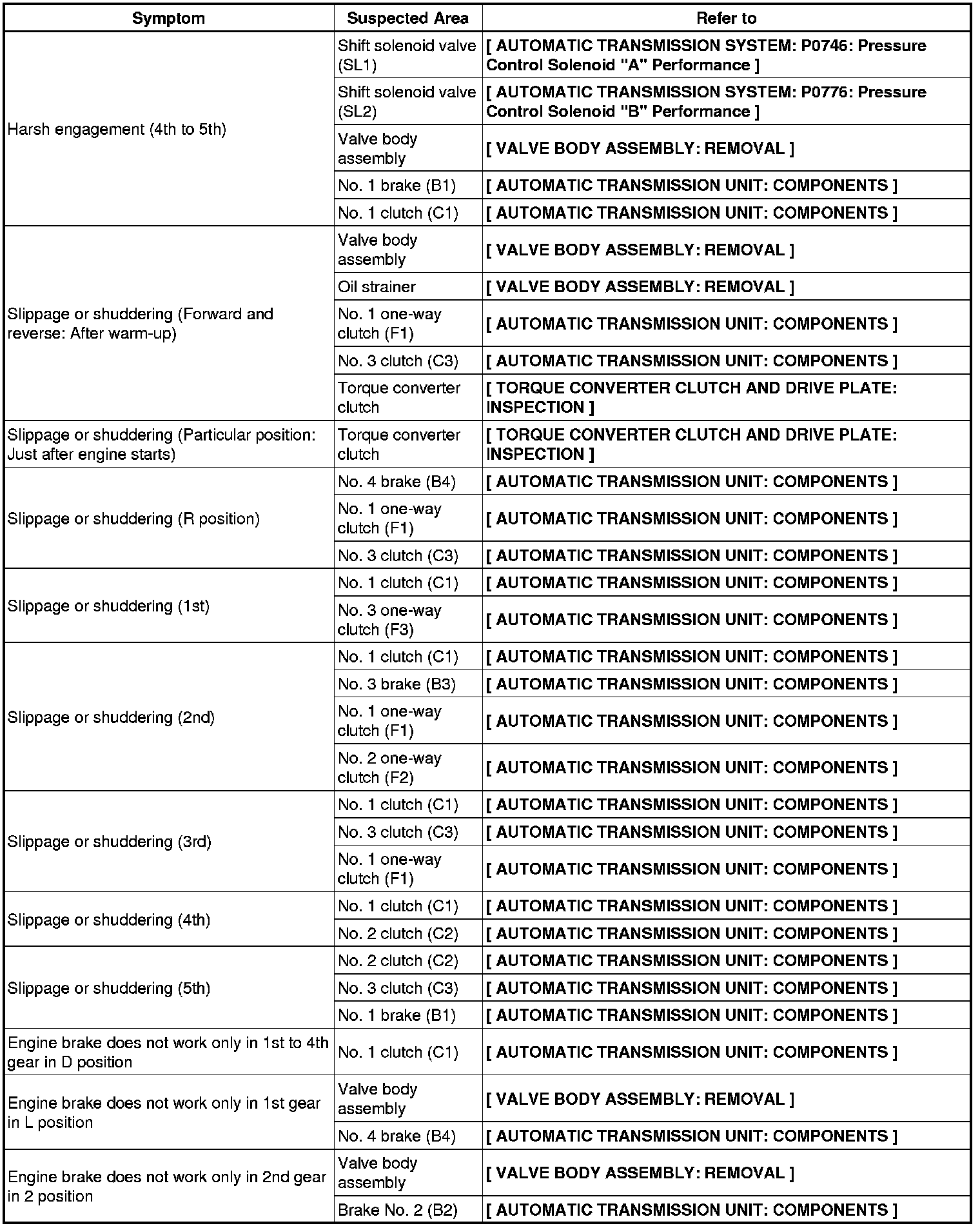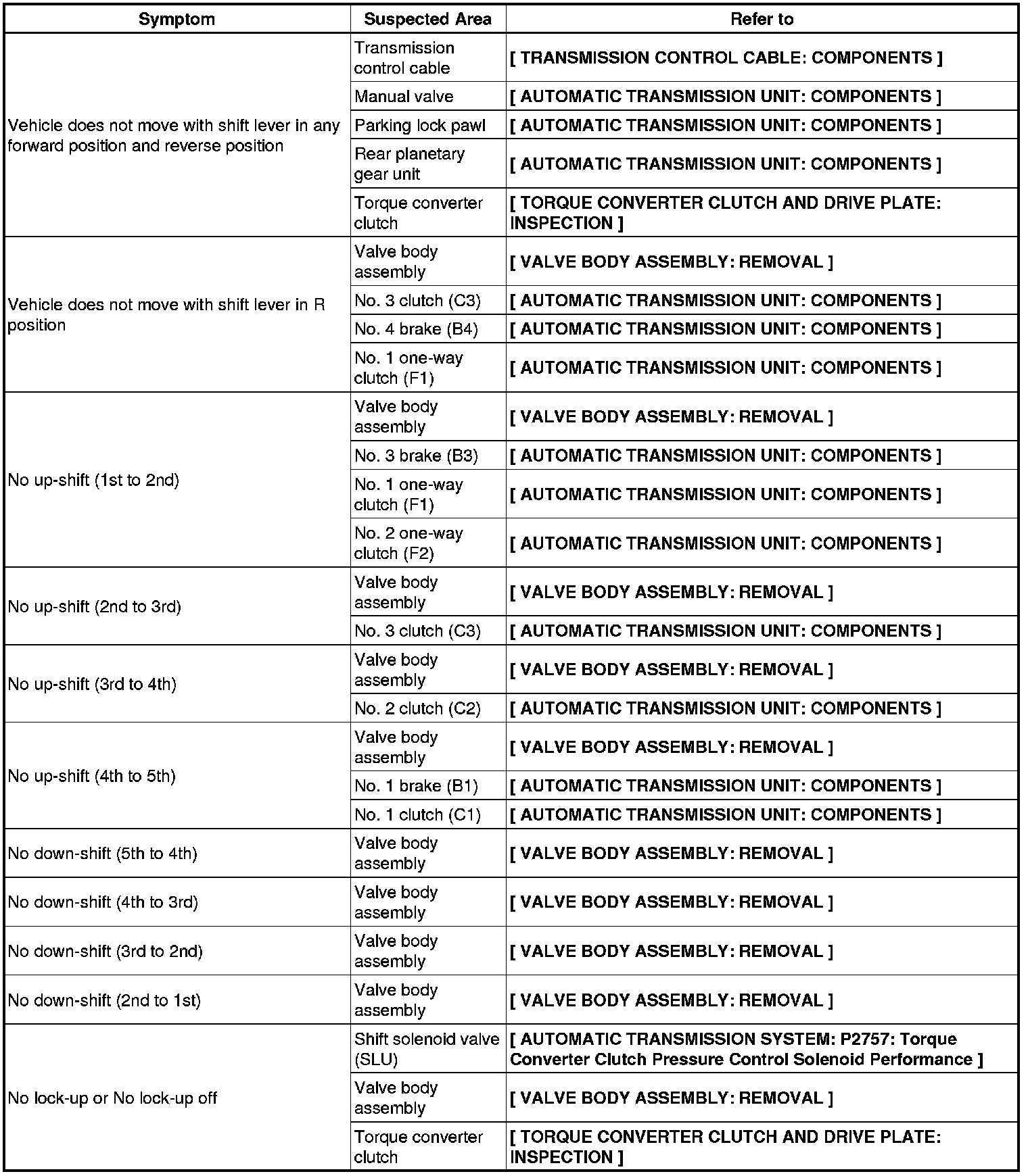 A750F AUTOMATIC TRANSMISSION: AUTOMATIC TRANSMISSION SYSTEM: PROBLEM SYMPTOMS TABLE