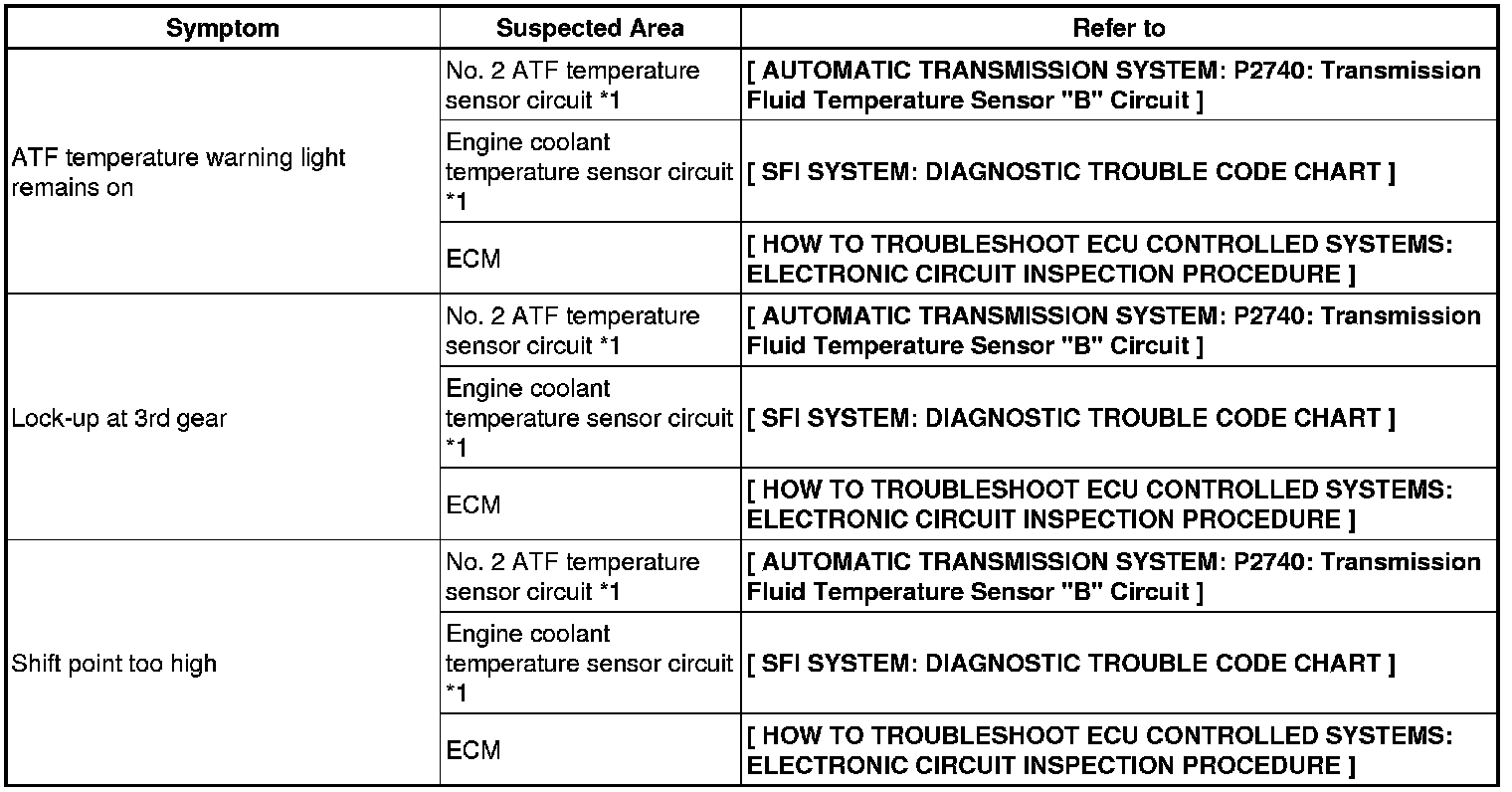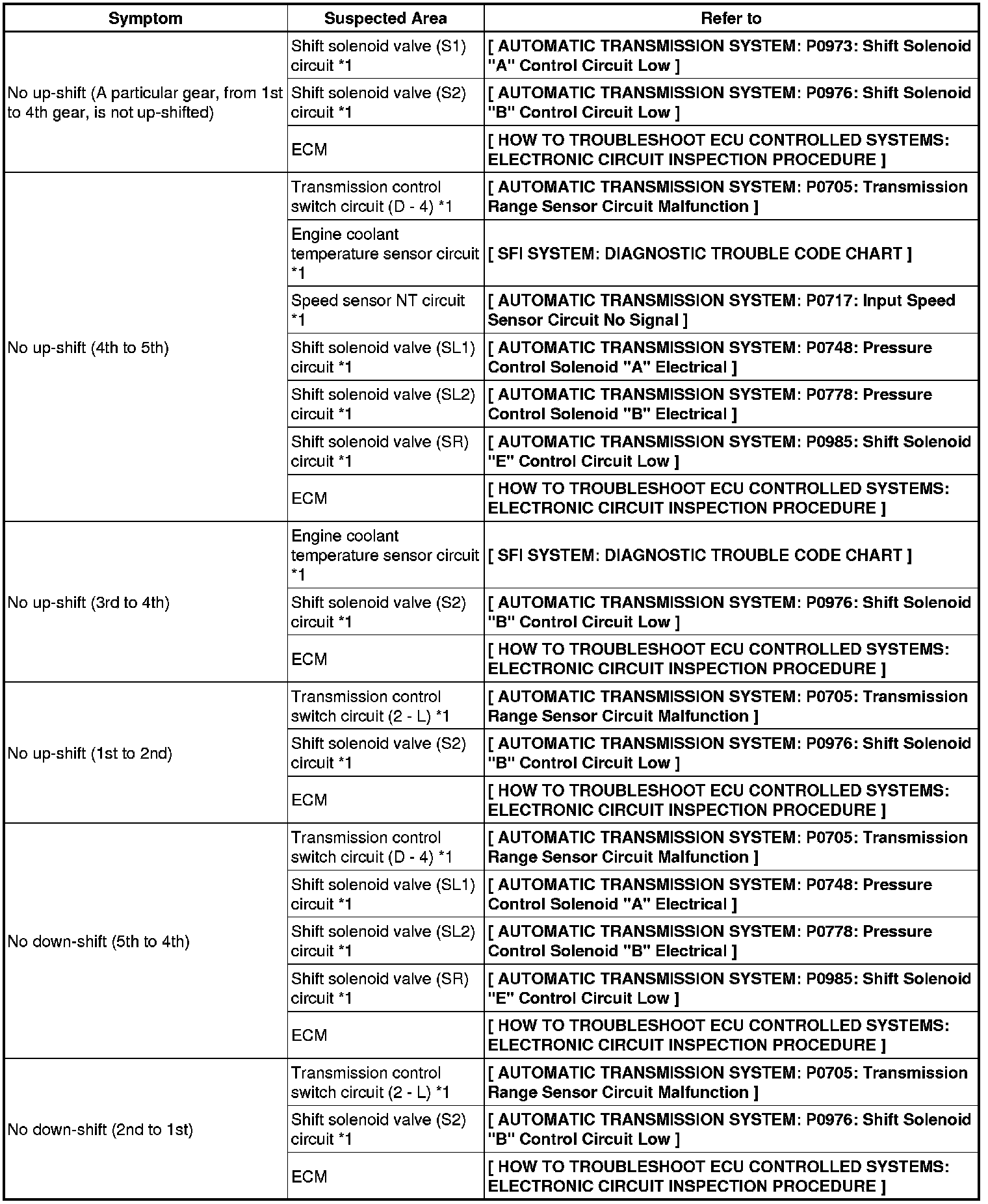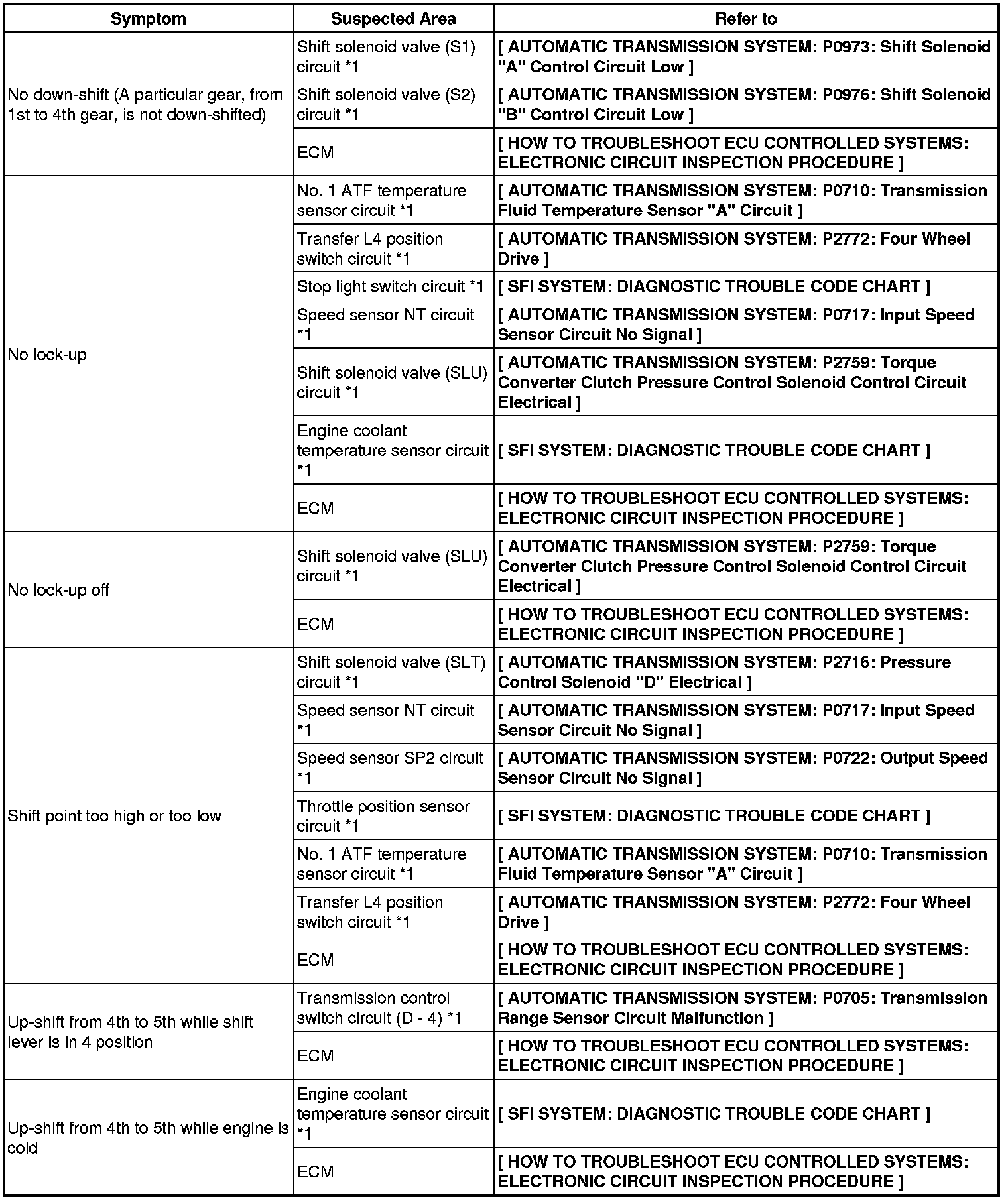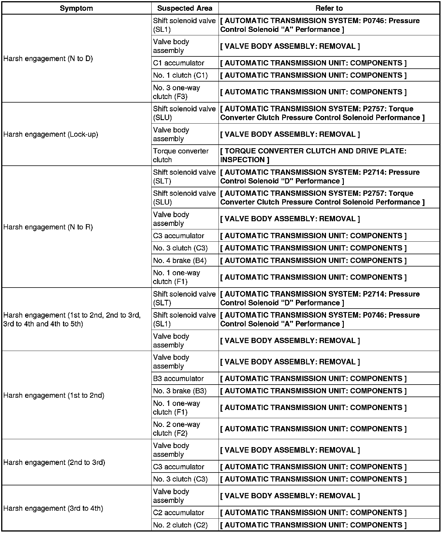 A750F AUTOMATIC TRANSMISSION: AUTOMATIC TRANSMISSION SYSTEM: PROBLEM SYMPTOMS TABLE