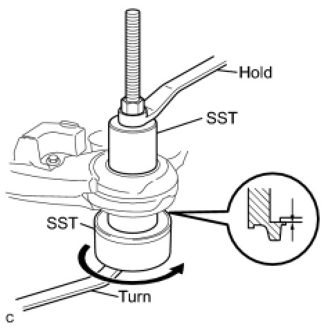 (c) Using SST, install the front suspension member body mounting rear cushion LH as shown in the illustration.