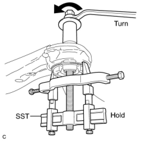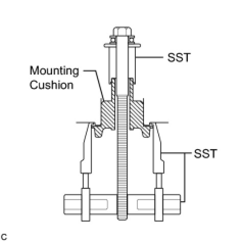 (b) Using SST, remove the front suspension member body mounting front cushion.