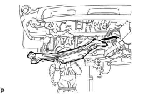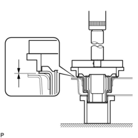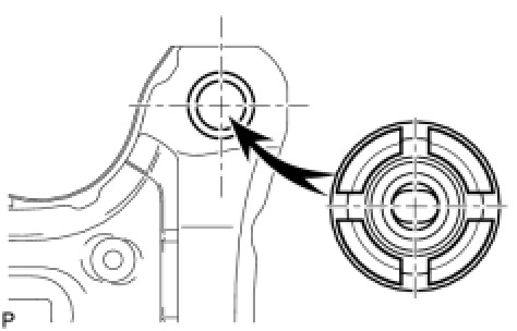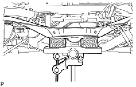 (c) While observing from the side, press in the rear suspension member body mounting front cushion LH until there is no clearance between the rear suspension member body mounting front cushion LH and the rear suspension member sub-assembly as shown in the illustration.