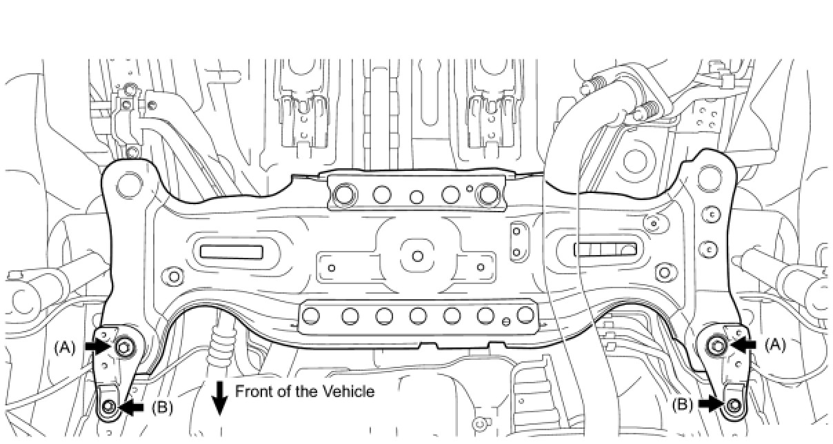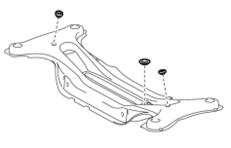 NOTE: When removing the rear suspension member, be careful not to damage the vehicle body or other components installed on the vehicle.