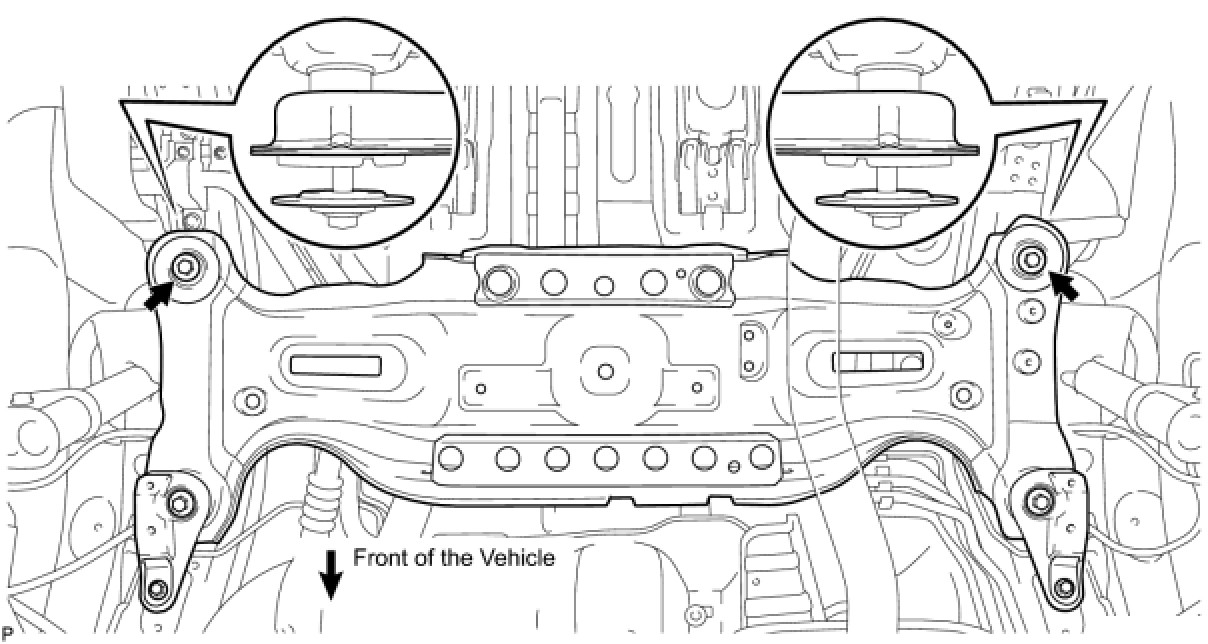 (a) Temporarily install a new rear suspension member body mounting front cushion RH to the position shown in the illustration.