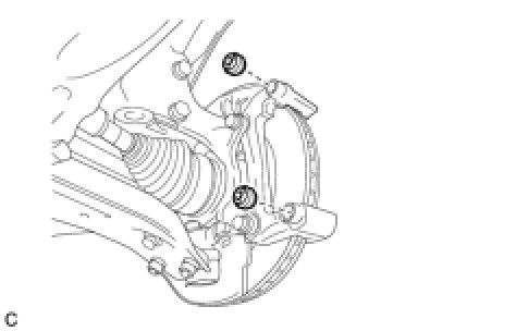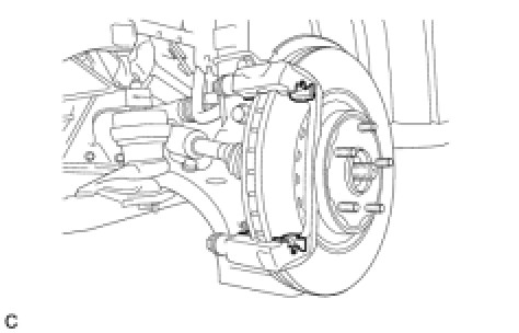 (a) Remove the 2 bolts and front disc brake cylinder mounting from the steering knuckle.