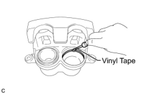 (a) Place a shop rag or a piece of cloth between the disc brake pistons and the disc brake cylinder assembly.