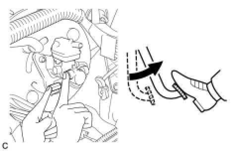 (f) Bleed the pressure reduction line according to "Step 3: Decrease Line" on the Techstream display.