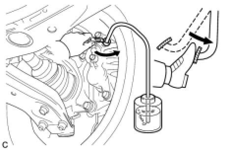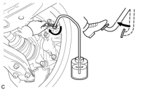 (c) When fluid stops coming out, tighten the bleeder plug, and then release the brake pedal (*4).