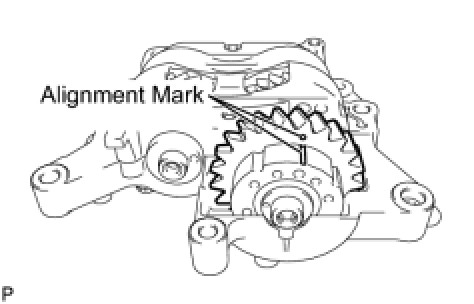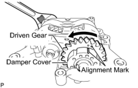 (2) Rotate the balance shaft driven gear of the No. 1 balance shaft counterclockwise to align the alignment mark of the balance shaft driven gear with the alignment mark of the balance shaft damper cover.
