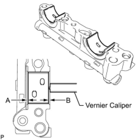 (c) Using a vernier caliper, measure the distance between the camshaft bearing cap edge and the camshaft bearing edge.