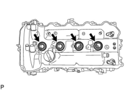 (b) Install the 4 plug tube gaskets to the cylinder head cover.