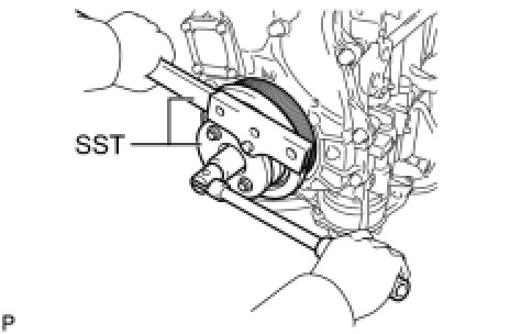 (b) Using SST, hold the crankshaft pulley and install the pulley bolt.