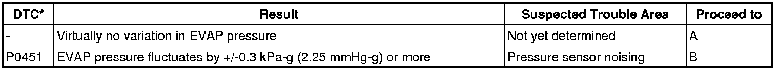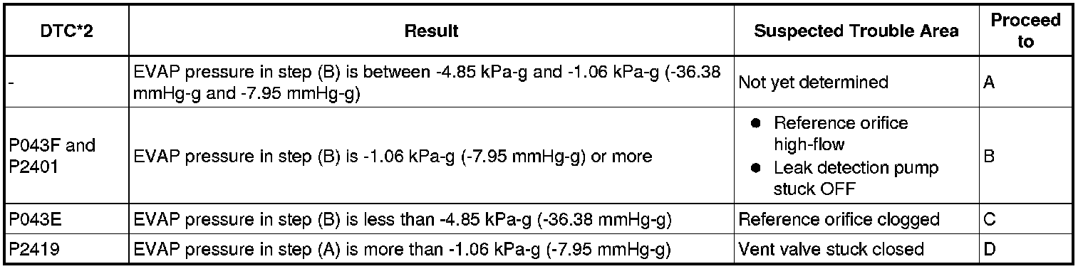 NOTE: If the reference pressure difference between the first and second checks is more than the specification, all the DTCs relating to the reference pressure (P043E, P043F, P0441, P0455, P0456, P2401, P2420) will be all stored.