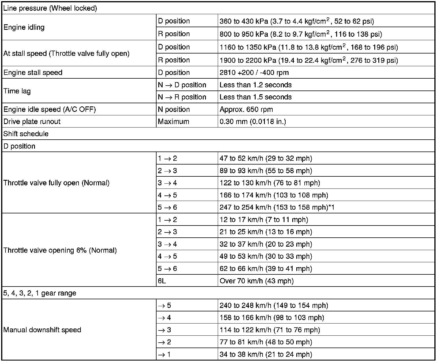 SERVICE SPECIFICATIONS: U760E AUTOMATIC TRANSAXLE: SERVICE DATA