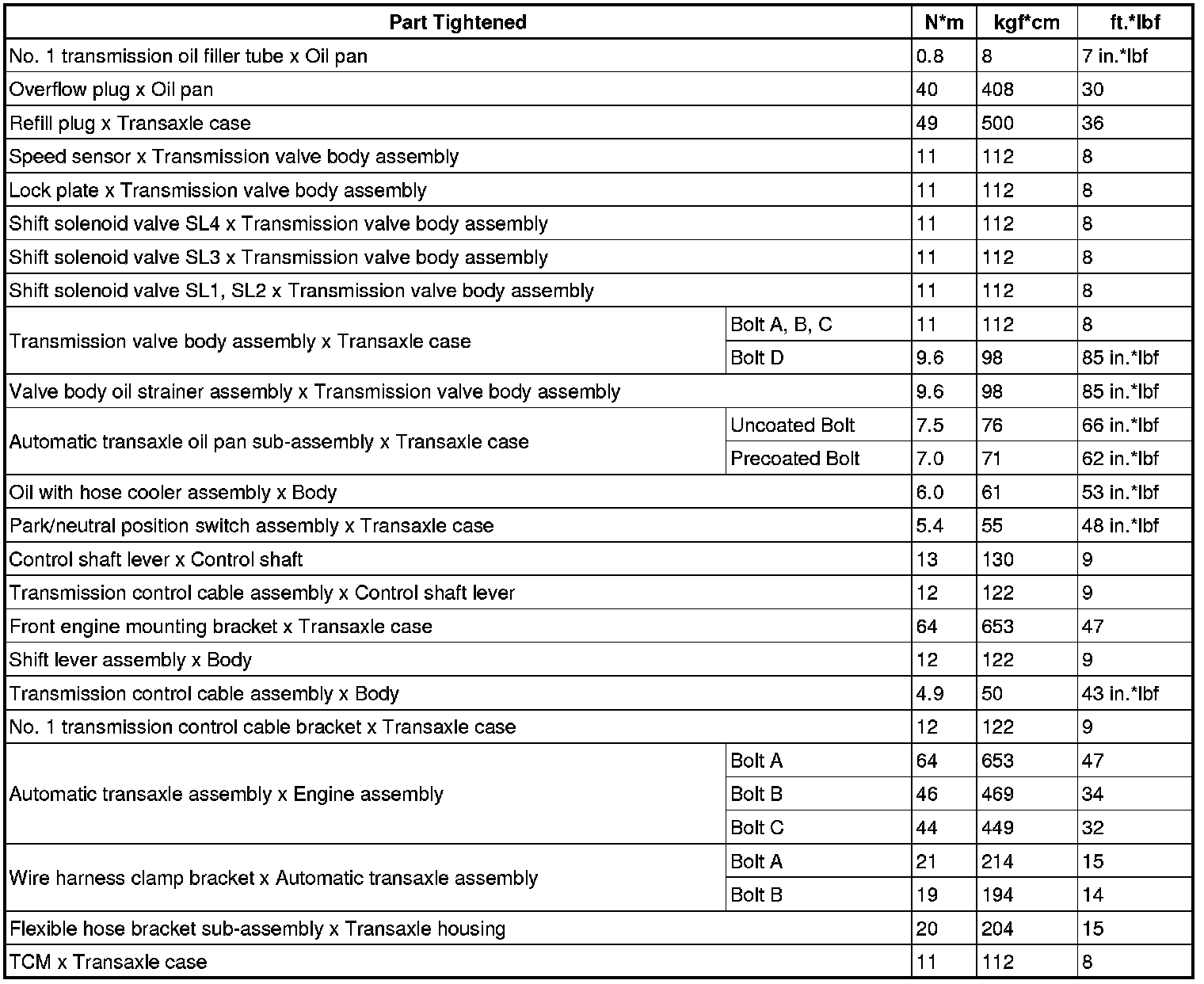SERVICE SPECIFICATIONS: U760E AUTOMATIC TRANSAXLE: TORQUE SPECIFICATIONS