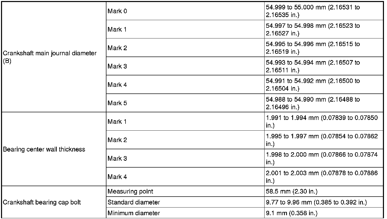 If a crankshaft bearing cap bolt does not meet the specified torque, replace it.