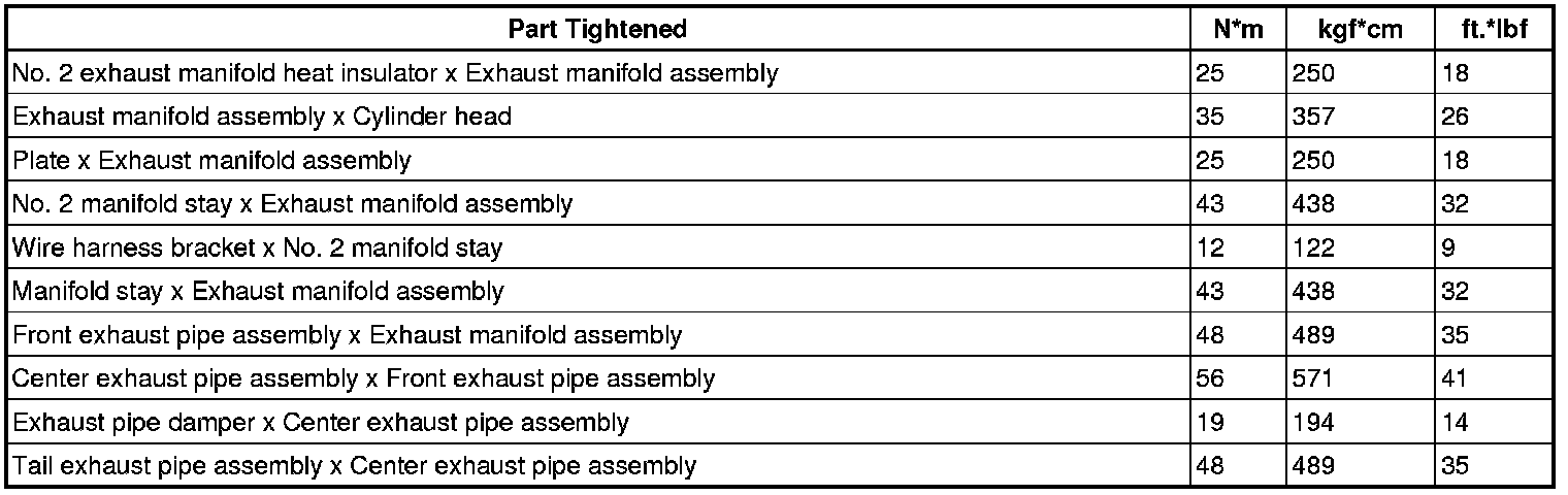 SERVICE SPECIFICATIONS: 1AR-FE EXHAUST: TORQUE SPECIFICATIONS
