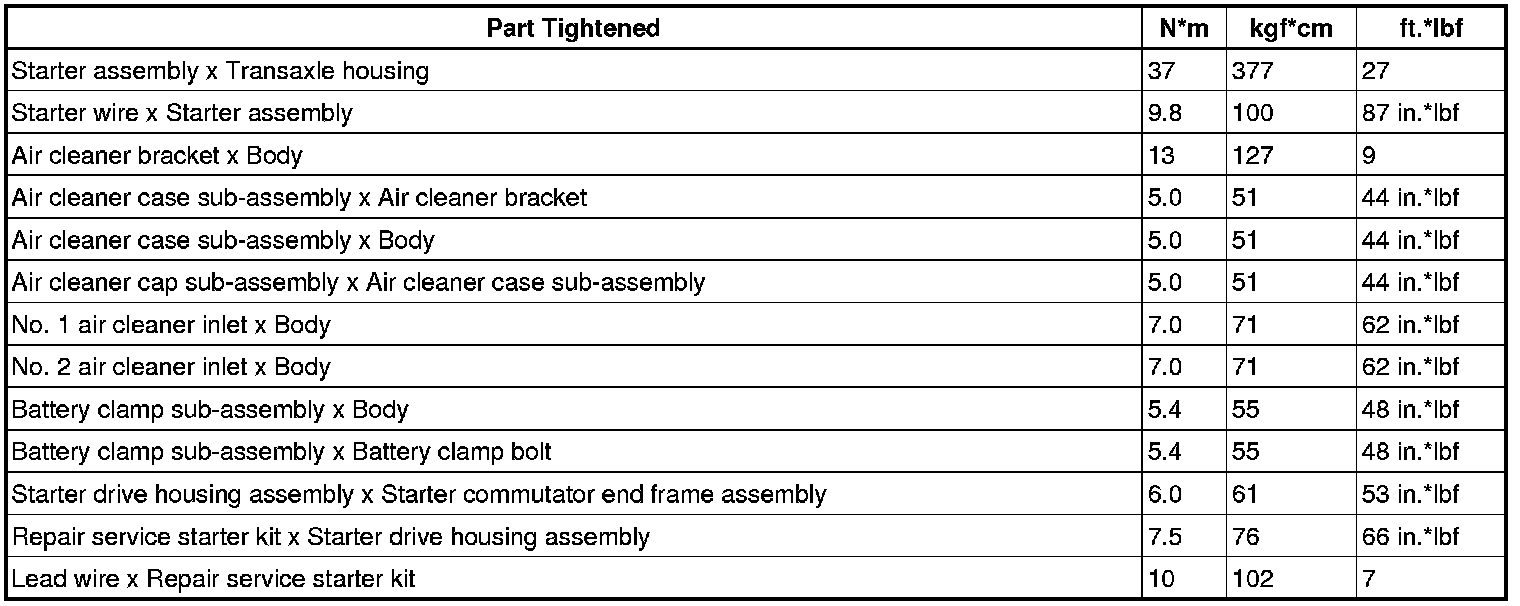 SERVICE SPECIFICATIONS: 1AR-FE STARTING: TORQUE SPECIFICATIONS