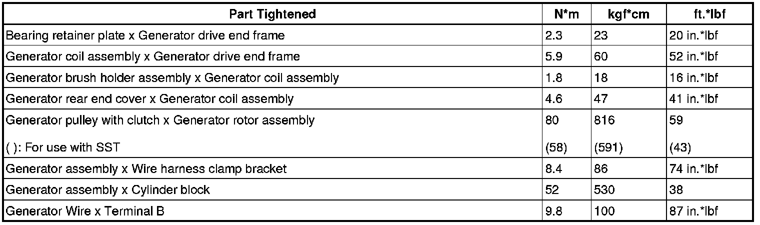 SERVICE SPECIFICATIONS: 1AR-FE CHARGING: TORQUE SPECIFICATIONS