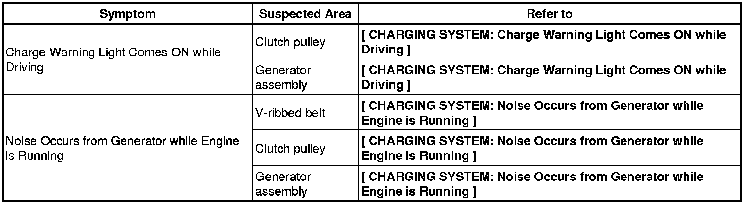 1AR-FE CHARGING: CHARGING SYSTEM: PROBLEM SYMPTOMS TABLE