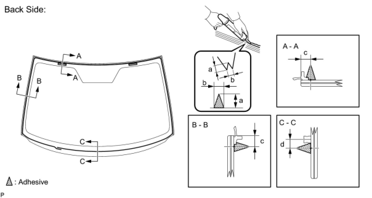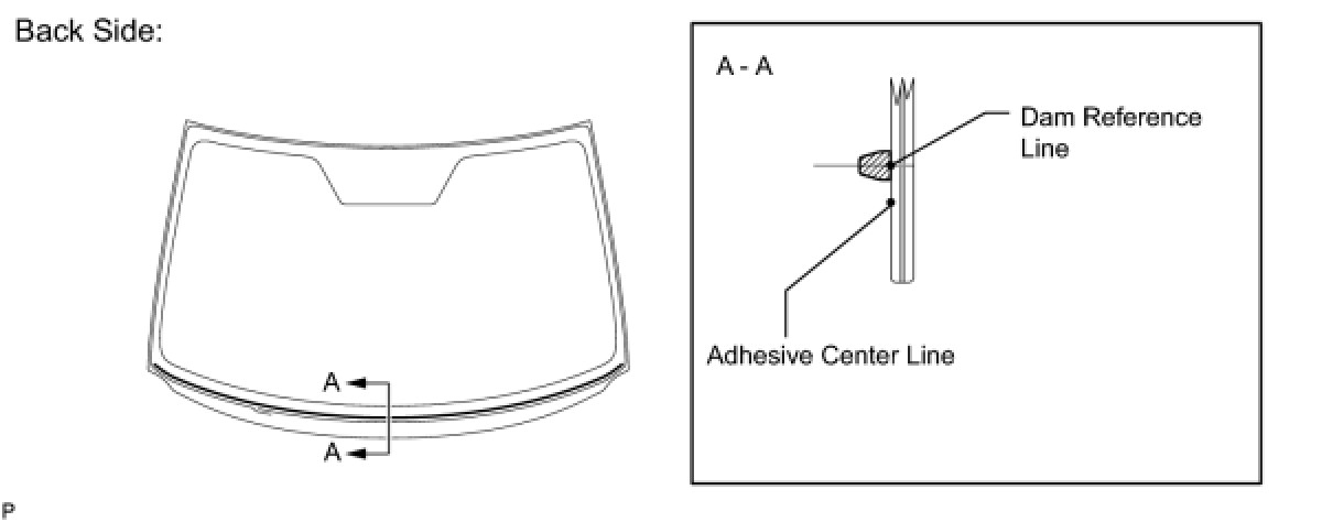 (b) Install a new window glass adhesive dam onto the windshield glass, as shown in the illustration.