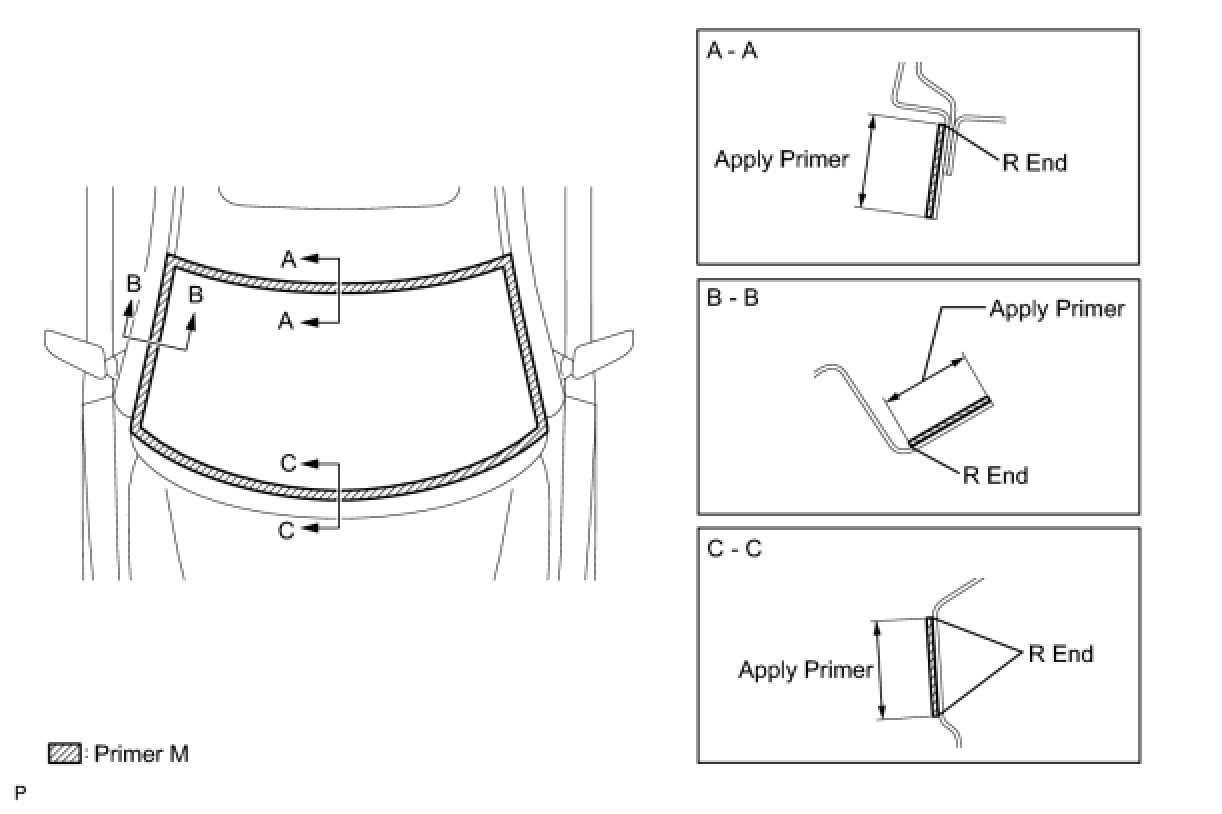(a) Using a brush or sponge, coat the application area of the No. 2 windshield glass stoppers with Primer G.