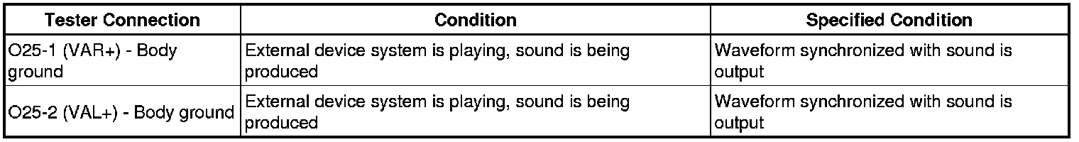 (a) Using an oscilloscope, check the signal waveform between each terminal and body ground according to the conditions shown in the table below.