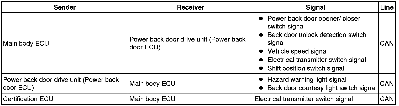 (3) "OPEN/CLOSE" request signals for the back door are input to the power back door ECU.
