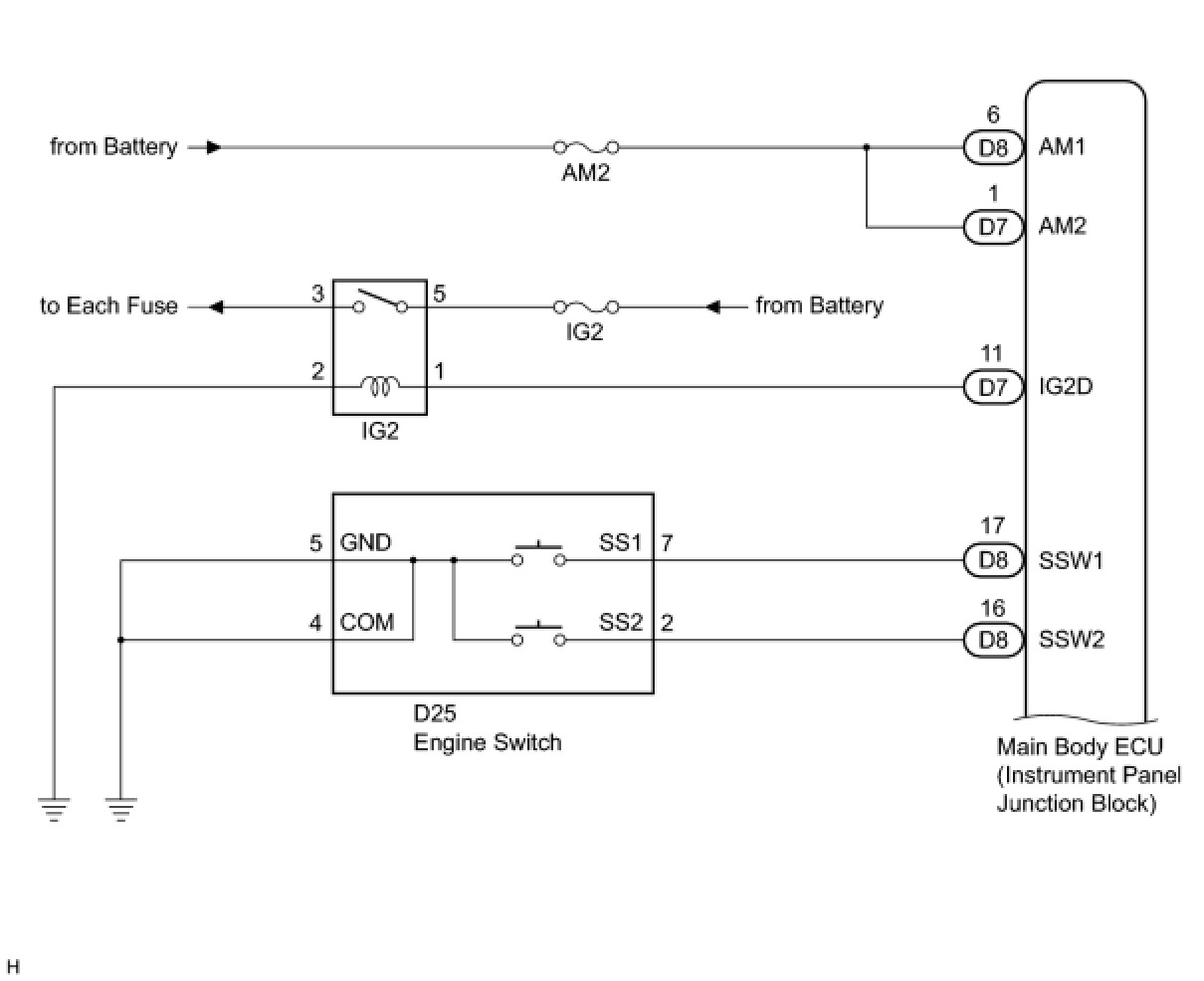 HINT: To allow use of Techstream to inspect the push-button start function when the engine switch is off, repeat opening and closing any of the doors. Opening and closing a door establishes communication between Techstream and the main body ECU (instrument panel junction block). (Opening and closing a door can also be simulated by operating a door courtesy light switch.)