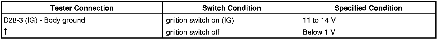 (b) Turn the ignition switch on (IG), and measure the voltage according to the value(s) in the table below.