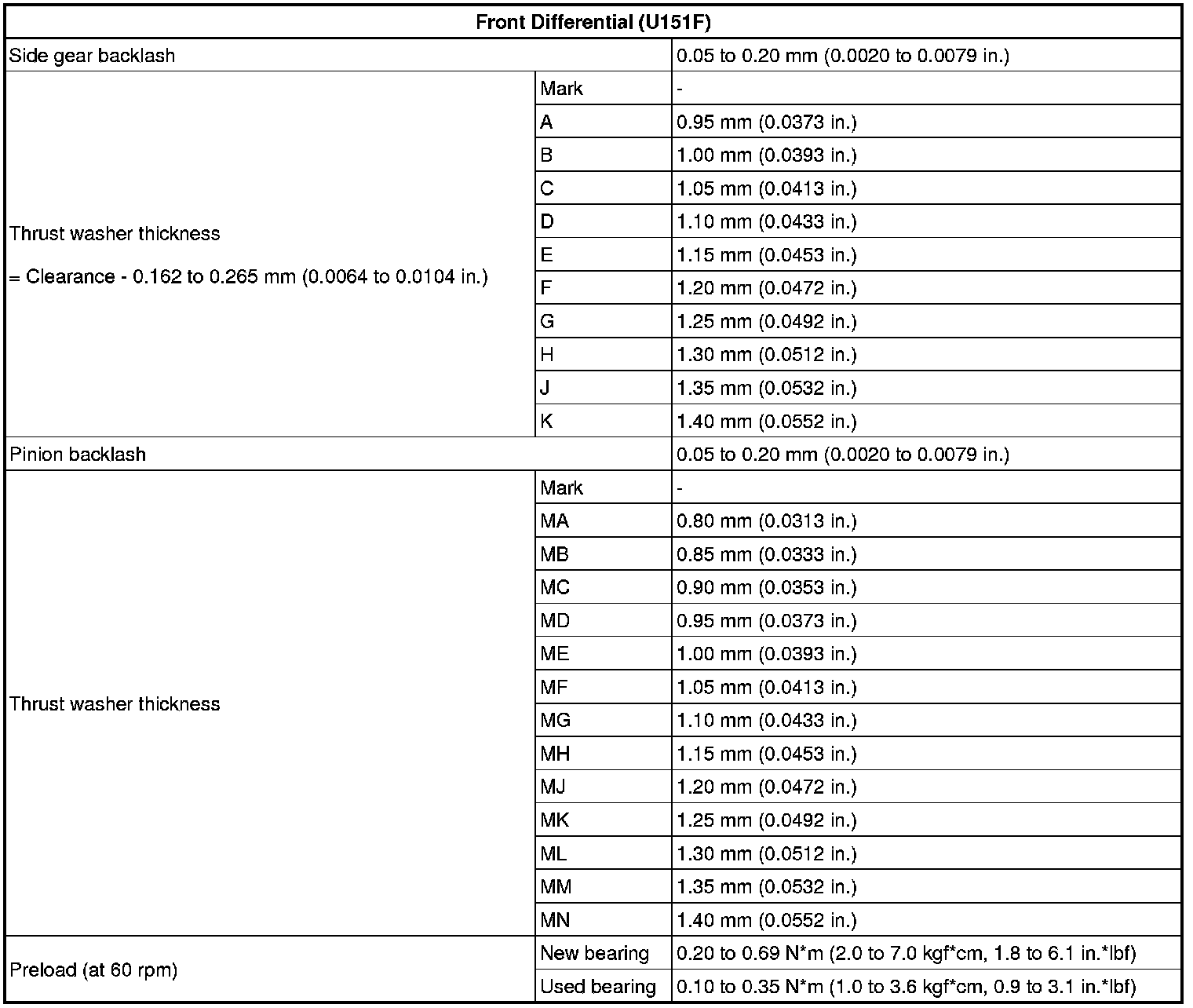 SERVICE SPECIFICATIONS: U151F AUTOMATIC TRANSAXLE: SERVICE DATA