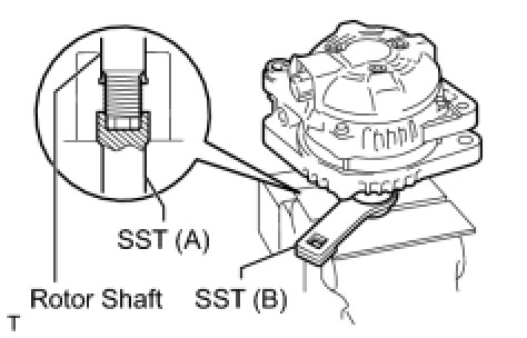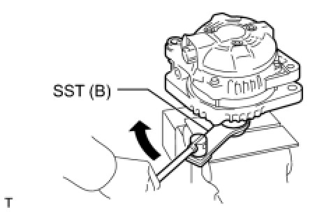 (f) Loosen the pulley by turning SST (B) in the direction shown in the illustration.