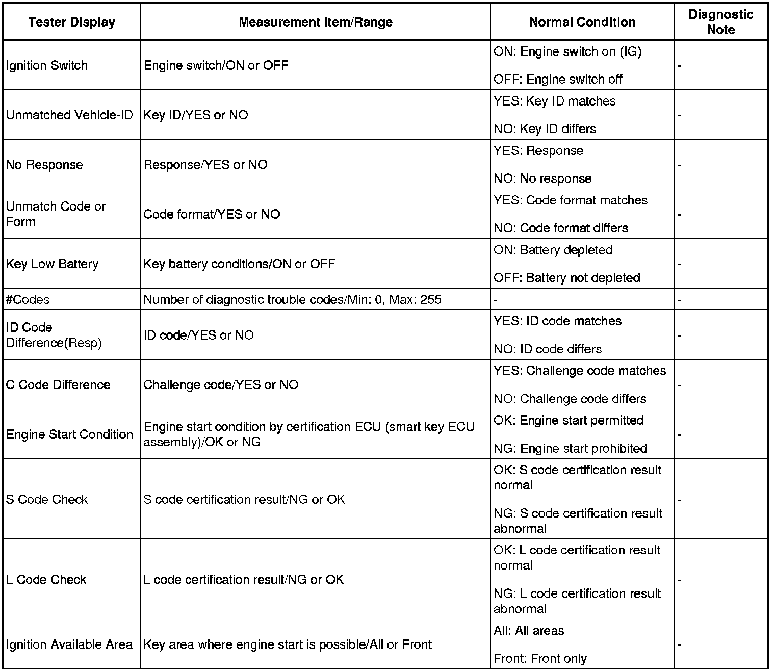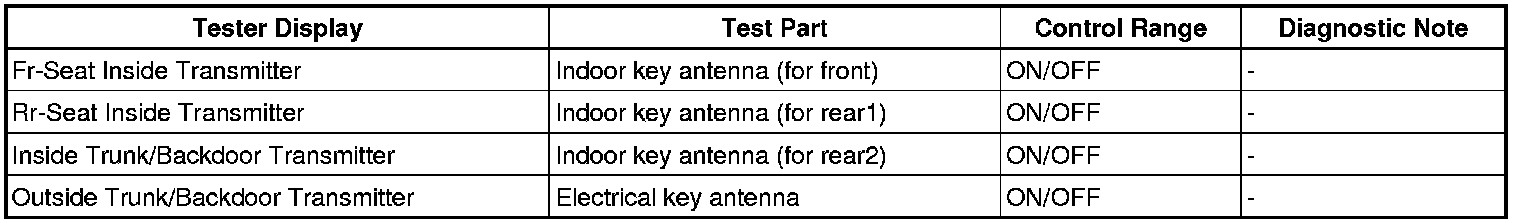 THEFT DETERRENT / KEYLESS ENTRY: SMART KEY SYSTEM (for Start Function): DATA LIST / ACTIVE TEST