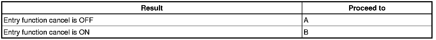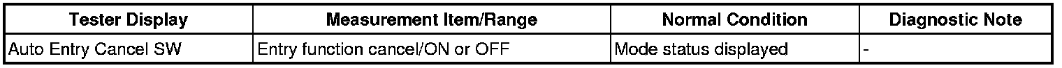 When the wireless operation can be used to lock and unlock the doors, the communication line between the door control receiver and certification ECU (smart key ECU assembly) is normal. When the entry operation does not operate, one of the following may be the cause: 1) entry cancel function is set through customization; 2) malfunction in smart key system communication line (electrical key transmitter and vehicle); or 3) wave interference.