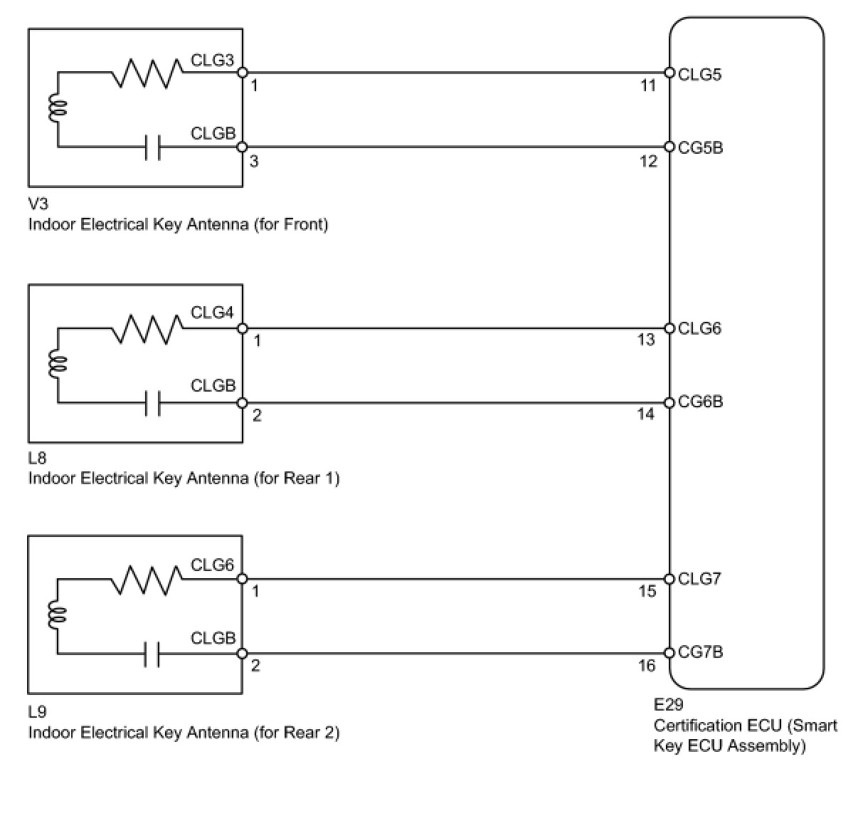 - If the buzzer does not sound for any indoor electrical key antennas, the certification ECU (smart key ECU assembly) circuit may have a malfunction.