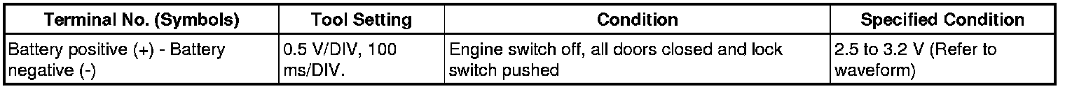HINT: When measuring the battery voltage, and operate the lock switch of a door handle bring the electrical key transmitter within the smart access system operating range and operate the lock switch of a door handle to perform the measurement. For the smart access system operating range, refer to System Description Smart Key System (for Entry Function).
