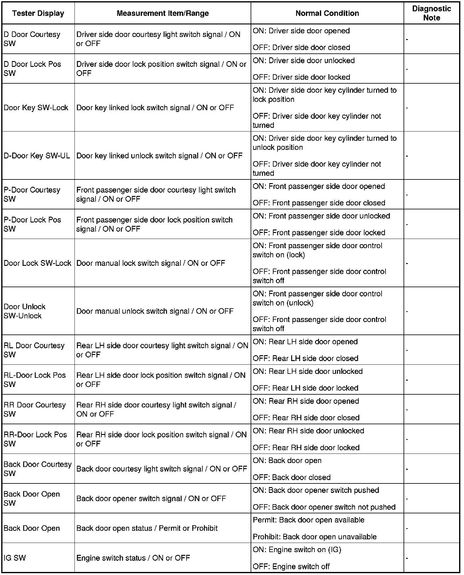 DOOR LOCK: POWER DOOR LOCK CONTROL SYSTEM: DATA LIST / ACTIVE TEST