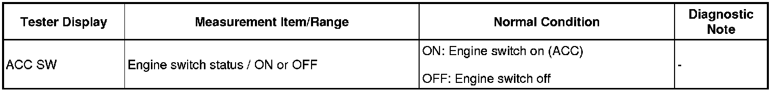 HINT: Using the Techstream to read the Data List allows the values or states of switches, sensors, actuators and other items to be read without removing any parts. This non-intrusive inspection can be very useful because intermittent conditions or signals may be discovered before parts or wiring is disturbed. Reading the Data List information early in troubleshooting is one way to save diagnostic time.