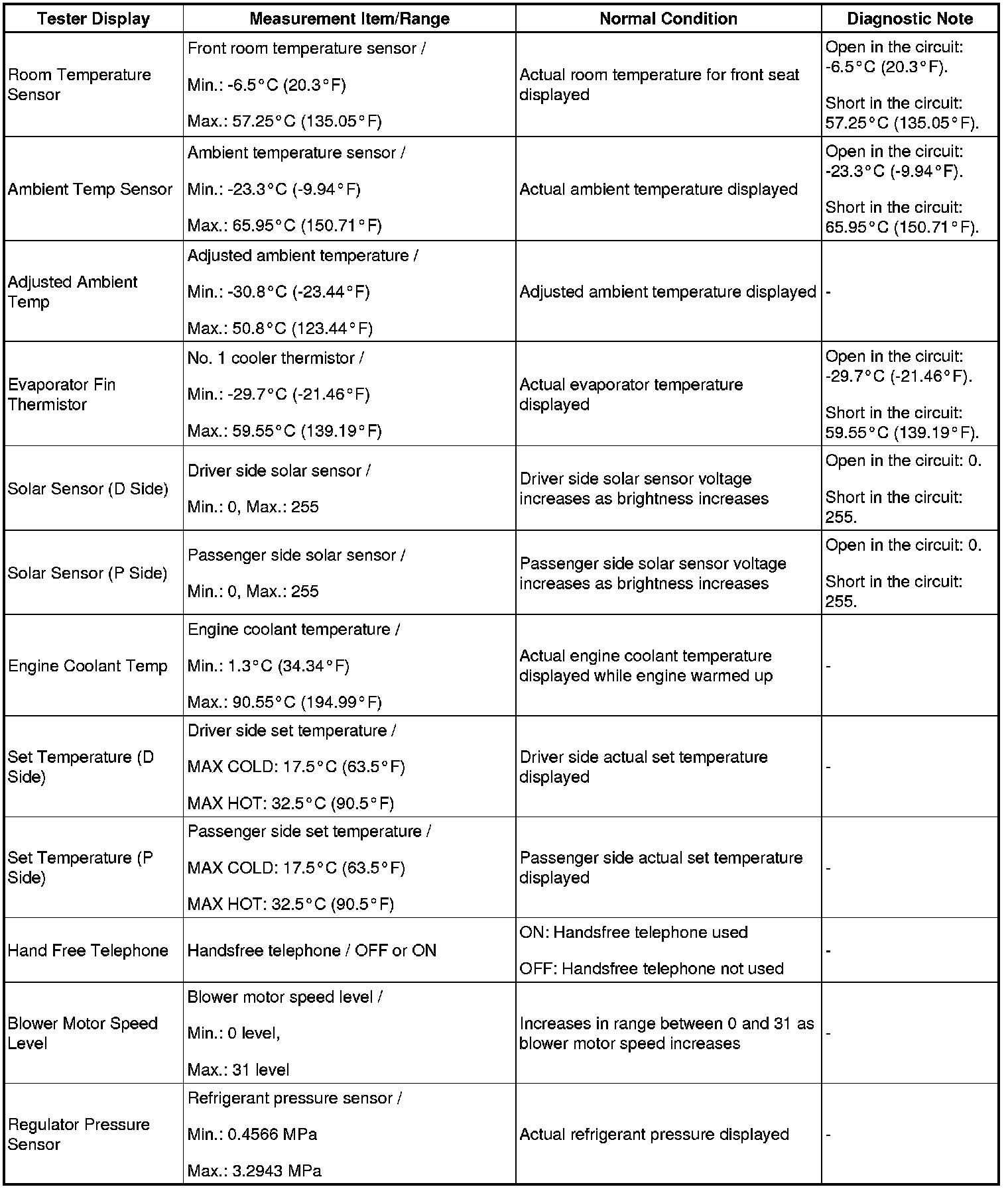 (d) Enter the following menus: Body Electrical / Air Conditioner / Data List.